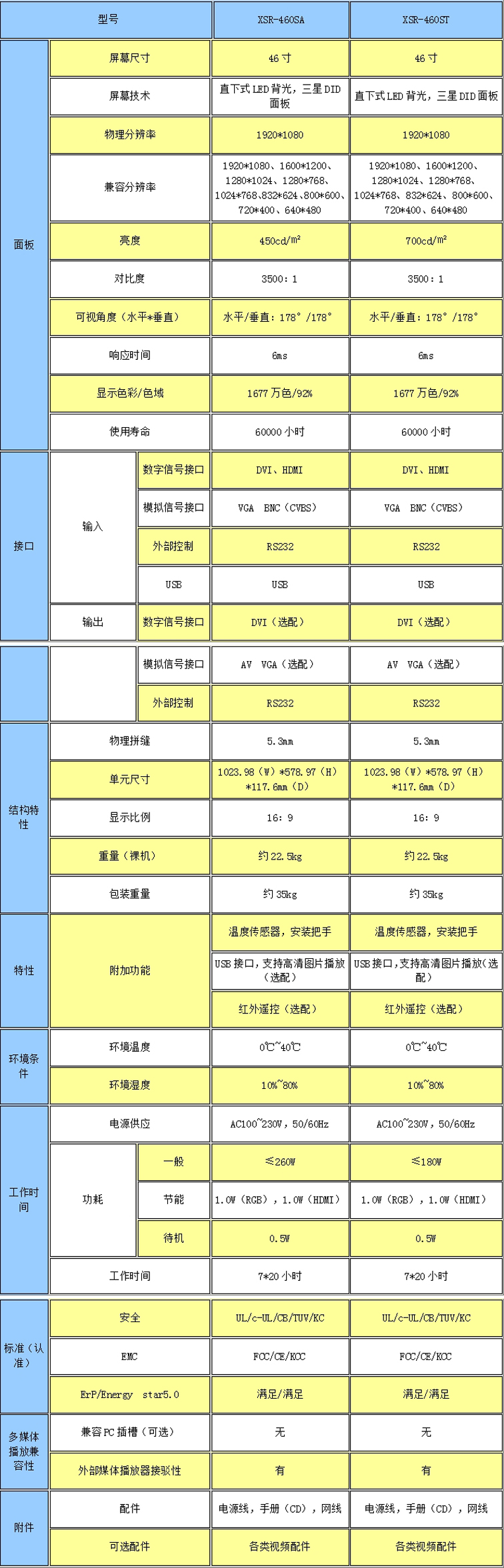 新視銳46寸超窄邊5.3mm拼縫液晶拼接單元采用三星原裝工業級DID液晶屏,采用先進的密集型LED光源背光系統,背光色彩還原度好,圖像逼真,點狀超密集分布,背光亮度均勻。采用高裕量的電子元器件,獨有智能色彩 校正技術,令色彩更加亮麗自然采用先進的UV2A液晶晶體排布技術:亮場明亮、節能、超高光能效、暗場無漏光。超高對比度,6ms響應速度,圖像更加流暢。具有節能、環保、無輻射、壽命長、長期使用亮度均勻,背光采用無玻璃材料,安全運輸,面板外殼裝材料堅固,不易破損。液晶顯示單元采用目前先進的背光技術,極大提升了拼接單元顯示效果,具有突出的技術特點。