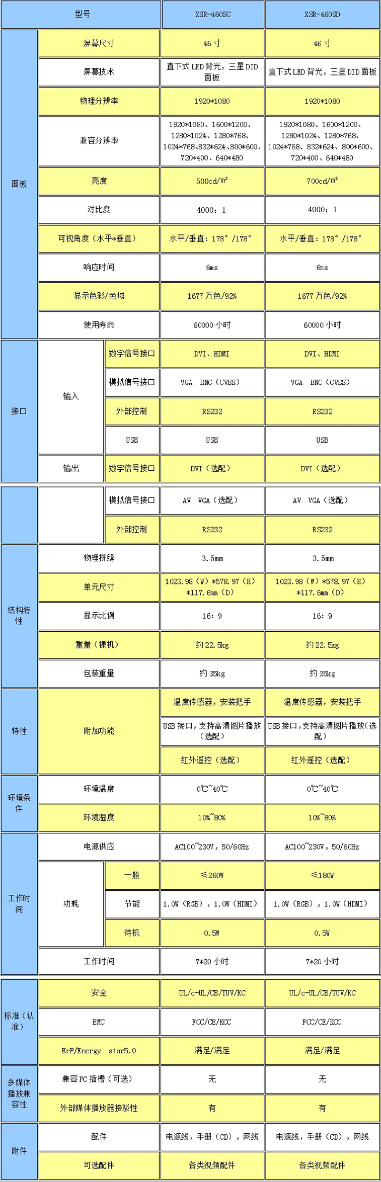 新視銳46寸超窄邊3.5mm拼縫液晶拼接單元產(chǎn)品參數(shù):