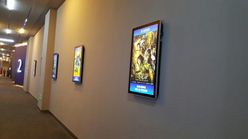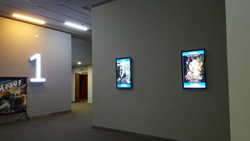 遂寧某電影院,為打造不一樣的看電影氛圍,宣傳新電影及電影上映時(shí)間等,新視銳根據(jù)客戶需求,采用一批豎式42寸廣告機(jī),安裝在去往各個(gè)電影院內(nèi)部走廊倆邊的墻面上的方案。通過廣告機(jī)播放著當(dāng)日要播放的電影簡(jiǎn)介以及大力宣傳即將上映的各種大片,為廣大喜愛電影的青年男女們可以提前做好選擇。