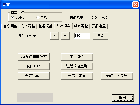 VAG顏色自動調整:當在VGA狀態時抓到的值不正確,顏色顯示不正常時,點擊該按鈕重新抓取,可重復多次點擊(注:在拼接單元單屏顯示時使用)。
